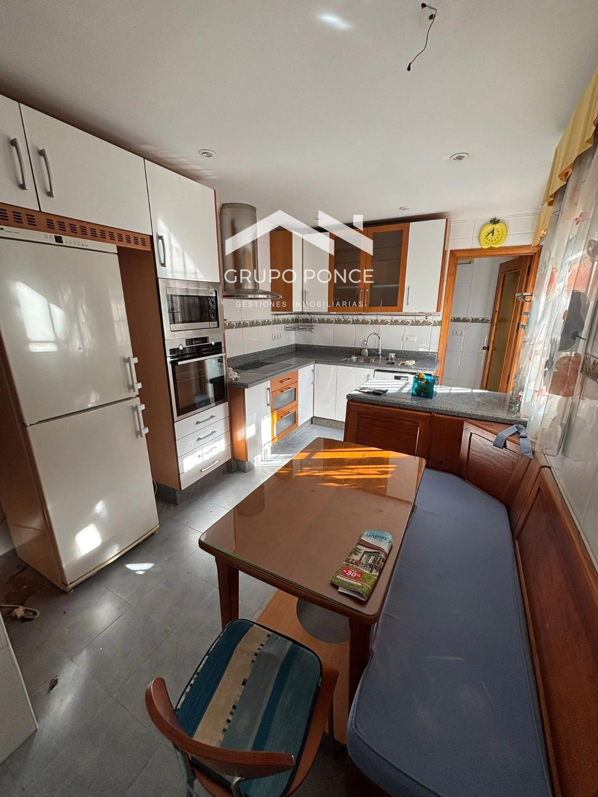 Amplio y luminoso salón con aire acondicionado, una habitación actualmente habilitada como salita con apertura al salón (ideal como despacho o dormitorio), baño completo y cocina totalmente amueblada con práctica despensa independiente.